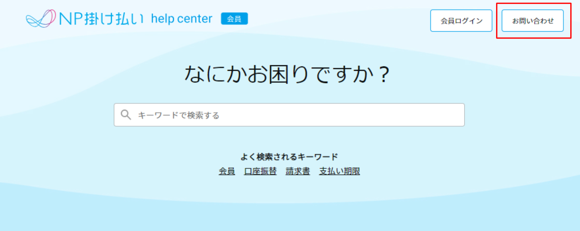 NP掛け払い会員の退会希望は、FAQページの右上、もしくは下部の「お問い合わせ」から