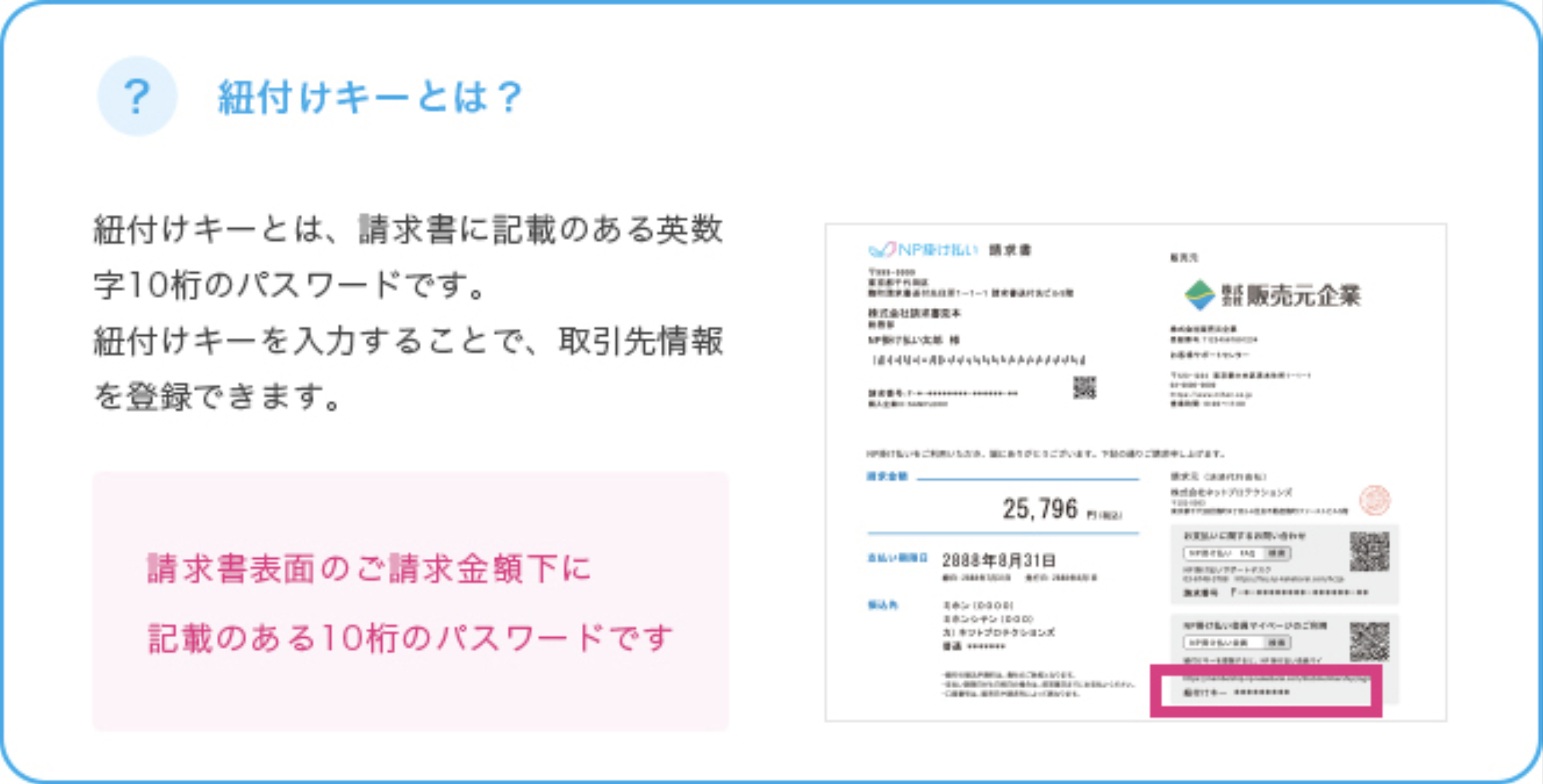 紐付けキーは、請求書に記載しています。