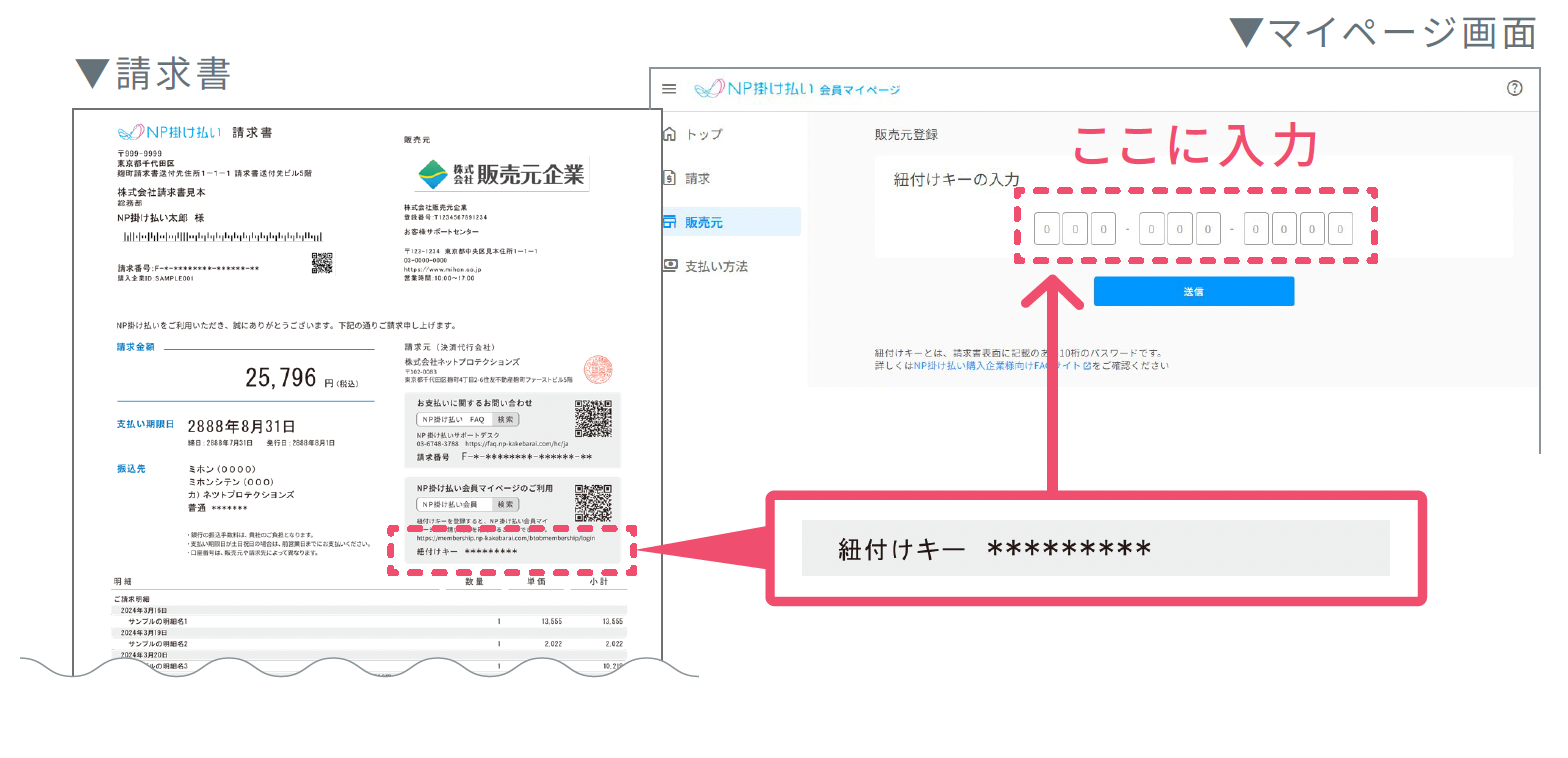 請求書記載の「紐付けキー」を入力してください。