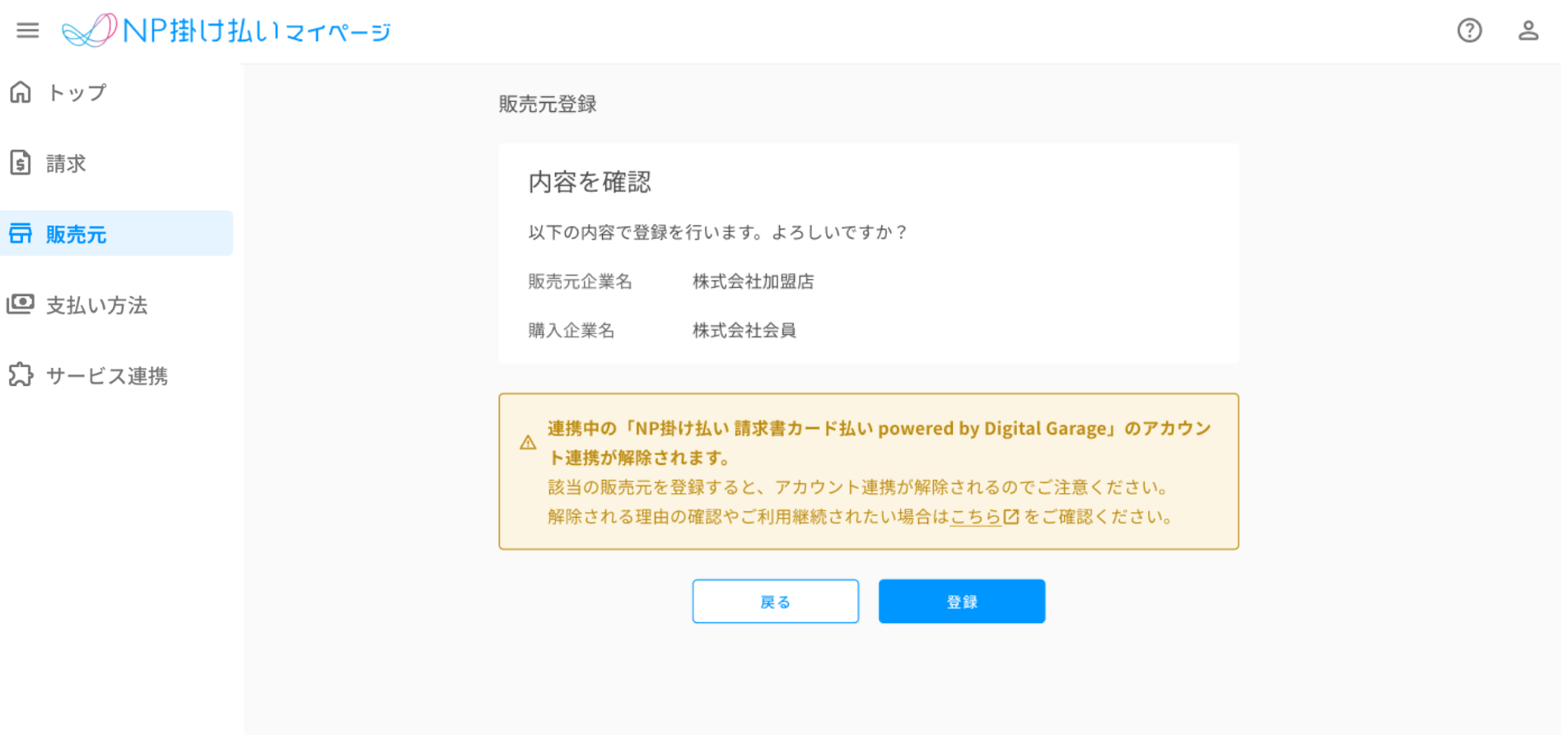 - 会員登録後、2回目以降の販売元登録になる場合は、連携が解除されることはございません